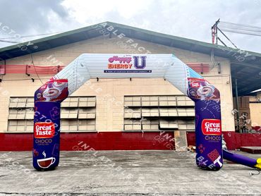 The vibrant inflatable arch stretched overhead, welcoming visitors with a burst of color and a festive air. A massive inflatable archway, constructed from high-grade materials and inflated with a blower, served as a temporary yet eye-catching entrance for your event.